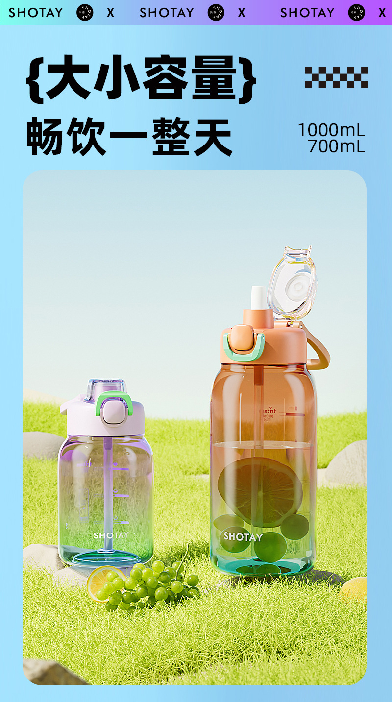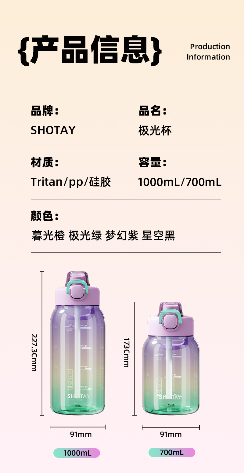 Shangtai Tritan Gradient Tidal Cool Aurora Plastic Cup Water Cup With Straw Cross-Border Cup Summer Internet Celebrity Accompanying Cup